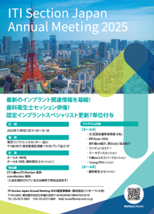 先日、当院の歯科医師・歯科衛生士で「ITI Section Japan/ITI Section Meeting」という、インプラント治療とインプラント周囲疾患(インプラントのまわりに起こる歯周病のような病気)についての講演会に参加してきました。今回は、その学びを患者様にお伝えさせていただきます。